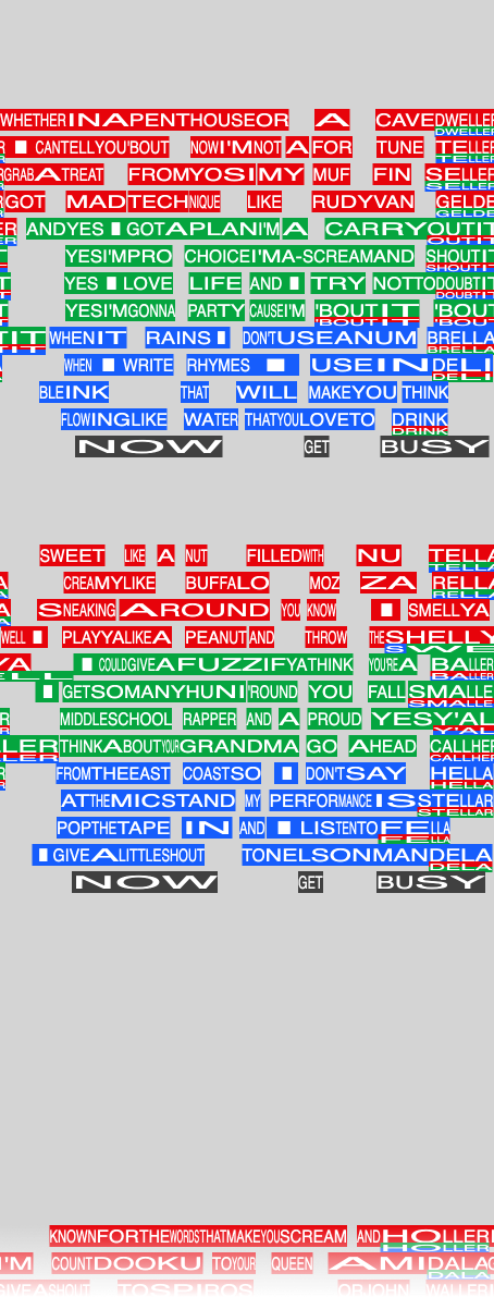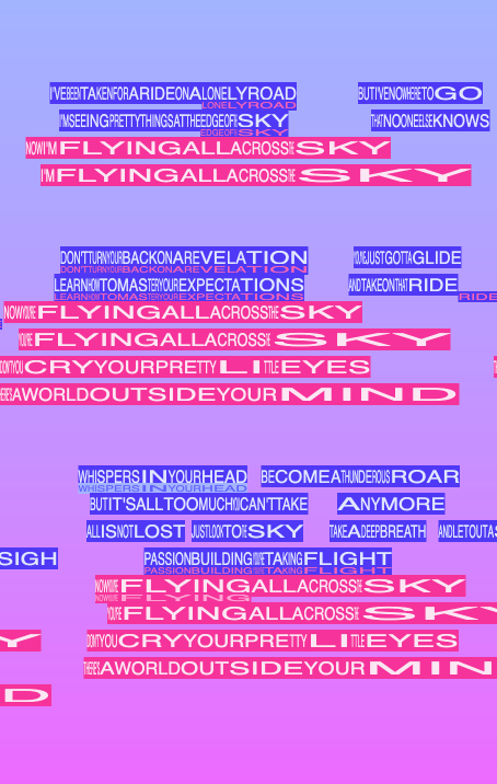 What would it look like if song lyrics were positioned and stretched on a timeline based on the audio’s timestamp and duration? I was curious, so I created a visualisation for a couple of songs to see what it looks like.